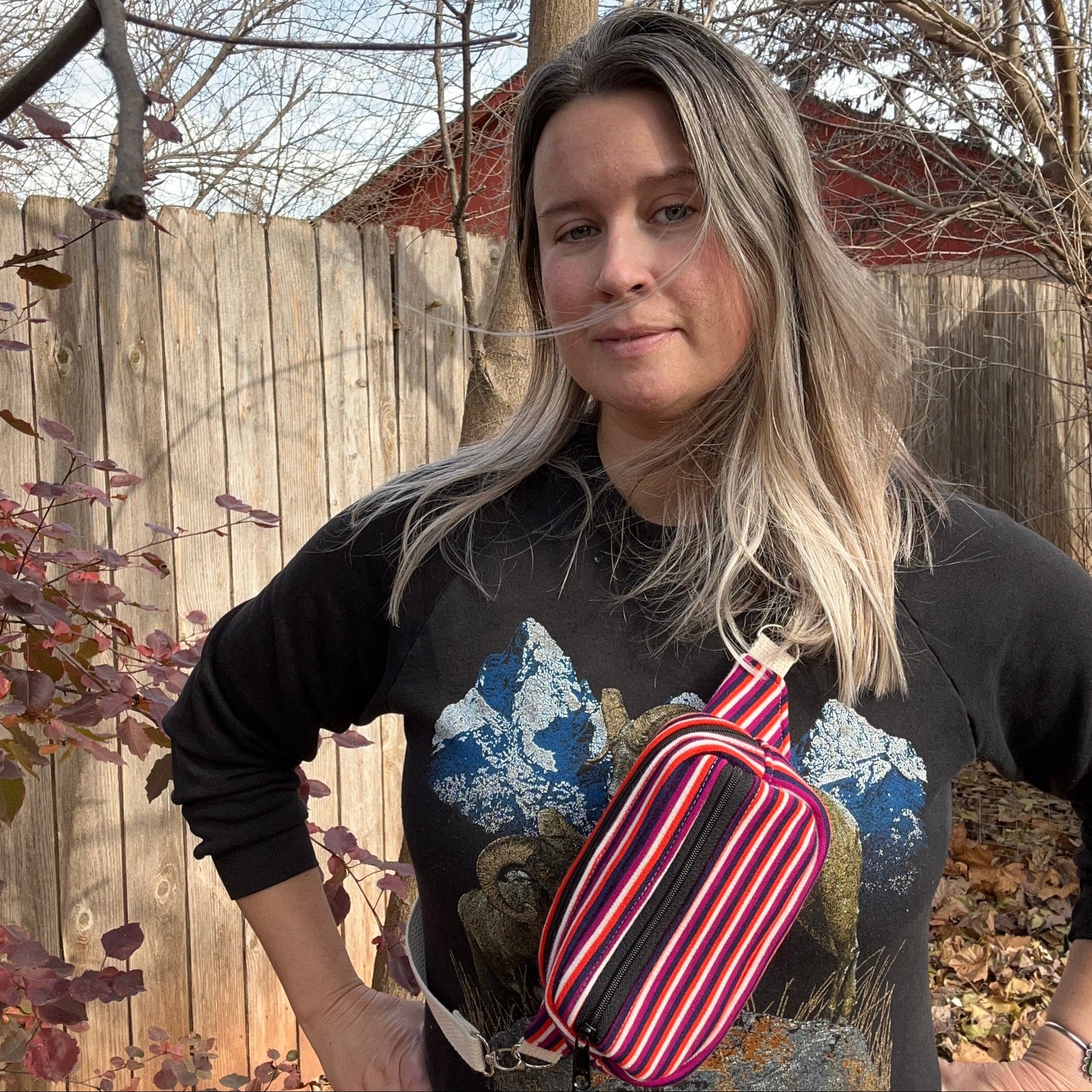 Made with soft vintage knit fabric, this mini crossbody bag is plush but structured for a roomy, boxy feel. It is fully lined in vintage fabric and features a mini zipper pocket in the front.